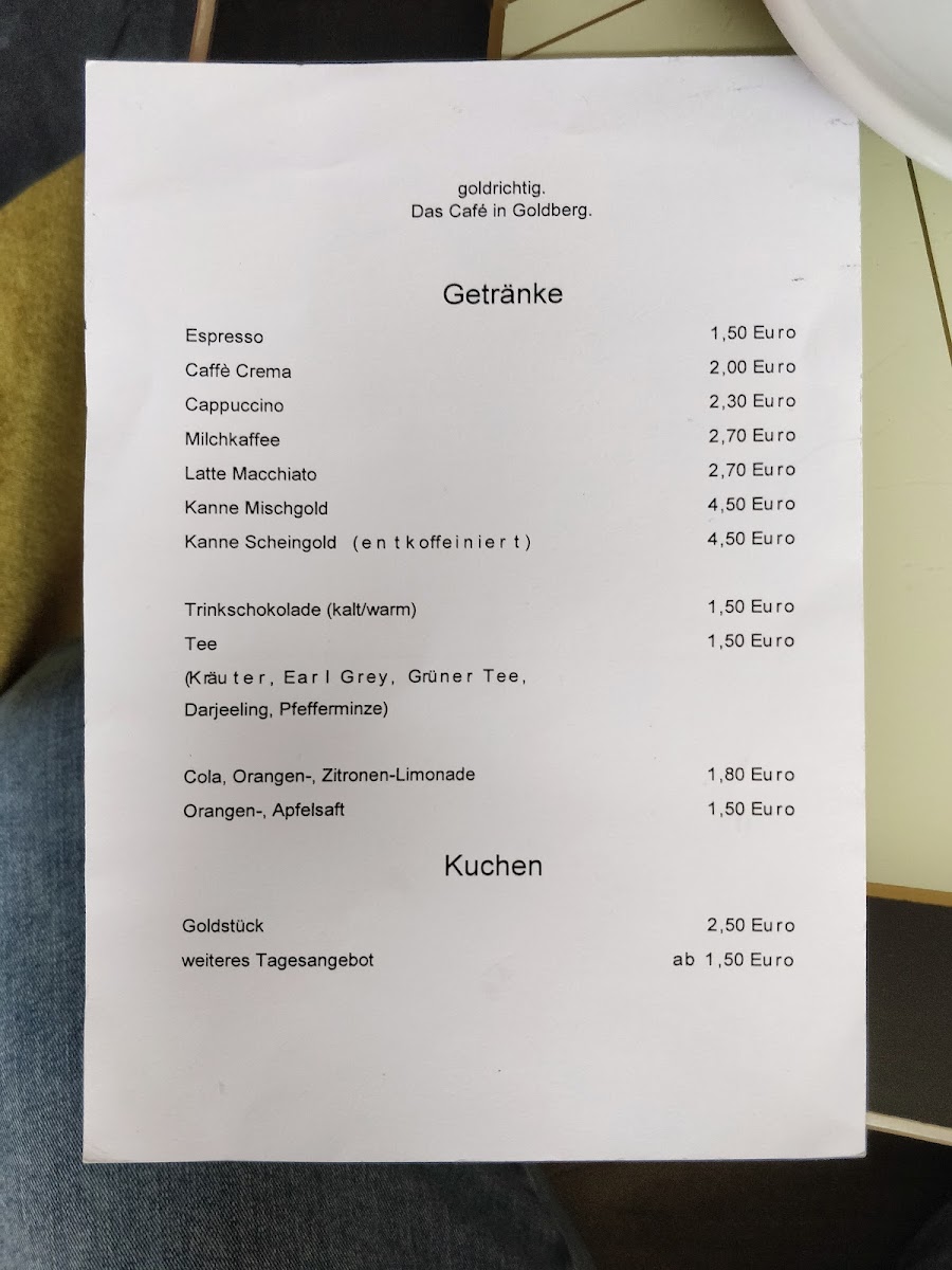 Welcome to goldrichtig | Café, a charming little spot nestled in Goldberg, Germany. This café embodies a unique blend of cozy Berlin flair with an inviting atmosphere, perfect for a casual afternoon break. Customers rave about the selection of delectable cakes—with three varieties available daily—and expertly crafted coffee, all at an excellent price point.